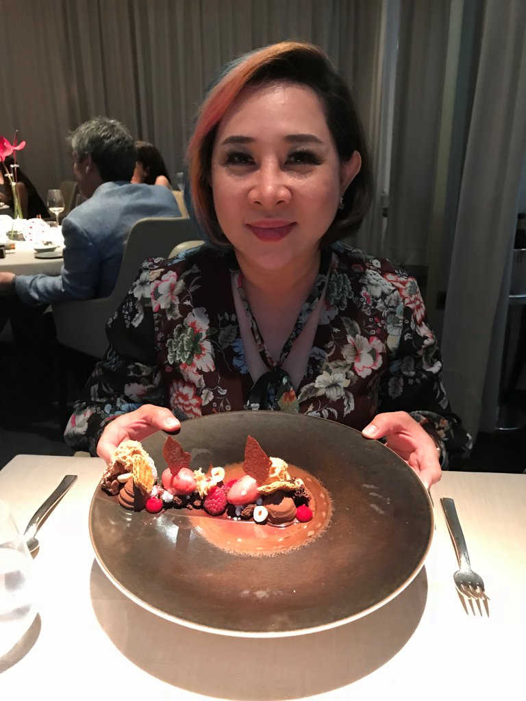 ก่อนที่จะปิดท้ายสั่งลาด้วยของหวาน คืนนี้มีเมนูชื่อว่า Gianduja and Raspberries เมื่อรสเข้มดุดันของช็อกโกแลตตัดกับความเปรี้ยวและหอมกรุ่นของราสเบอร์รี่
