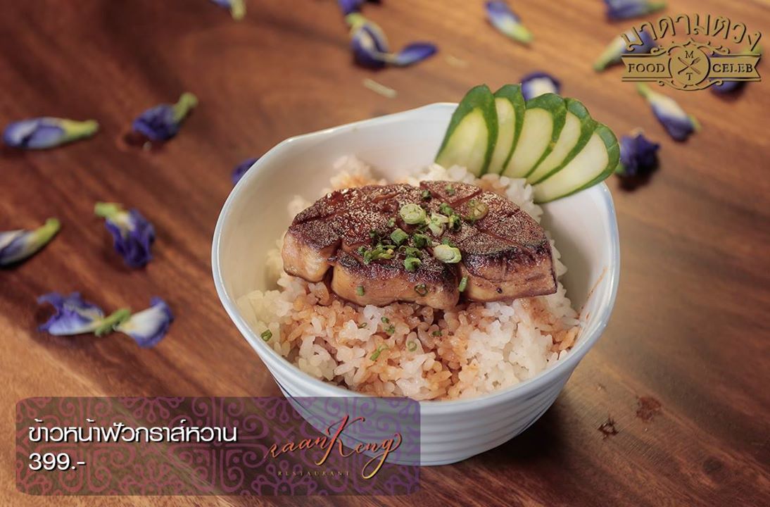 สำหรับคอเนื้อแล้วแนะนำวากิวแดดเดียว เนื้อวากิวติดมัน ตากแดดเดียวทอดมาหอมกลิ่นเนื้อฟุ้ง ทำให้ต้องหยิบชิ้นต่อๆ ไป ข้าวหน้าฟัวกราส์หวาน ตับห่านเกรดพรีเมี่ยมชิ้นหนาทอดมาวางบนข้าวราดซอสซี่อิ๊วรสหวานเค็ม น้ำจากตับทอดลงผสมกับข้าวให้รสชาติกลมกล่อมที่สุด ปิดท้ายให้สมใจกับสีน้ำเงินด้วยเมนูวุ้นชาเขียวข้าวเหนียวอัญชัน ราดด้วยน้ำกะทิอัญชันค่ะ