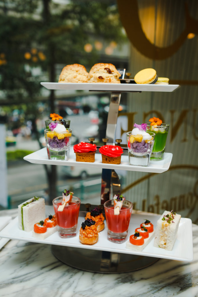 ส่วนสาวๆ ที่ชอบทานขนม ทางร้านมีชุด High Tea หรือ Afternoon Tea สำหรับทาน 1-2 คน พร้อมชา ในชุดจะประกอบด้วย ของคาว และ ของหวาน เช่น แซนด์วิชไข่กับมายองเนสทรัฟเฟิ้ล มีแซลมอนรมควัน และที่ขาดไม่ได้ สำหรับสาวสายหวาน คือ สโคน ซึ่งที่นี่ จะมีให้เลือก 3 รส Butter Scone, Raisin Scone และ Sesame Scone ชิ้นโตๆ เสิร์ฟคู่กับแยม และ Clotted Cream ทานคู่กันได้ครบรส หอมหวานมัน พร้อมจิบชา
